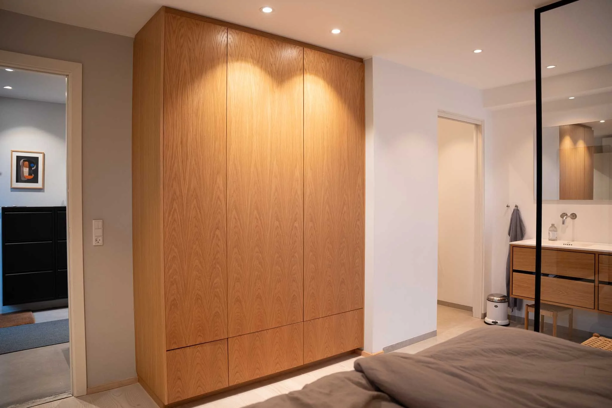 Et soveværelse skabt til en travl hverdag. Et projekt, hvor ro, funktion og gennemtænkte detaljer blev samlet i én sammenhængende løsning.